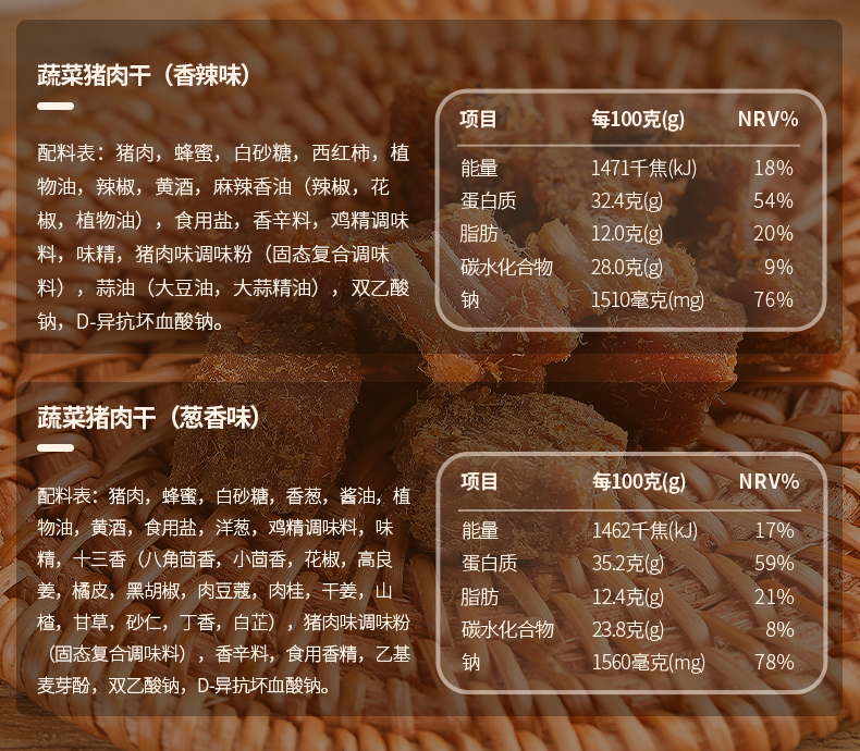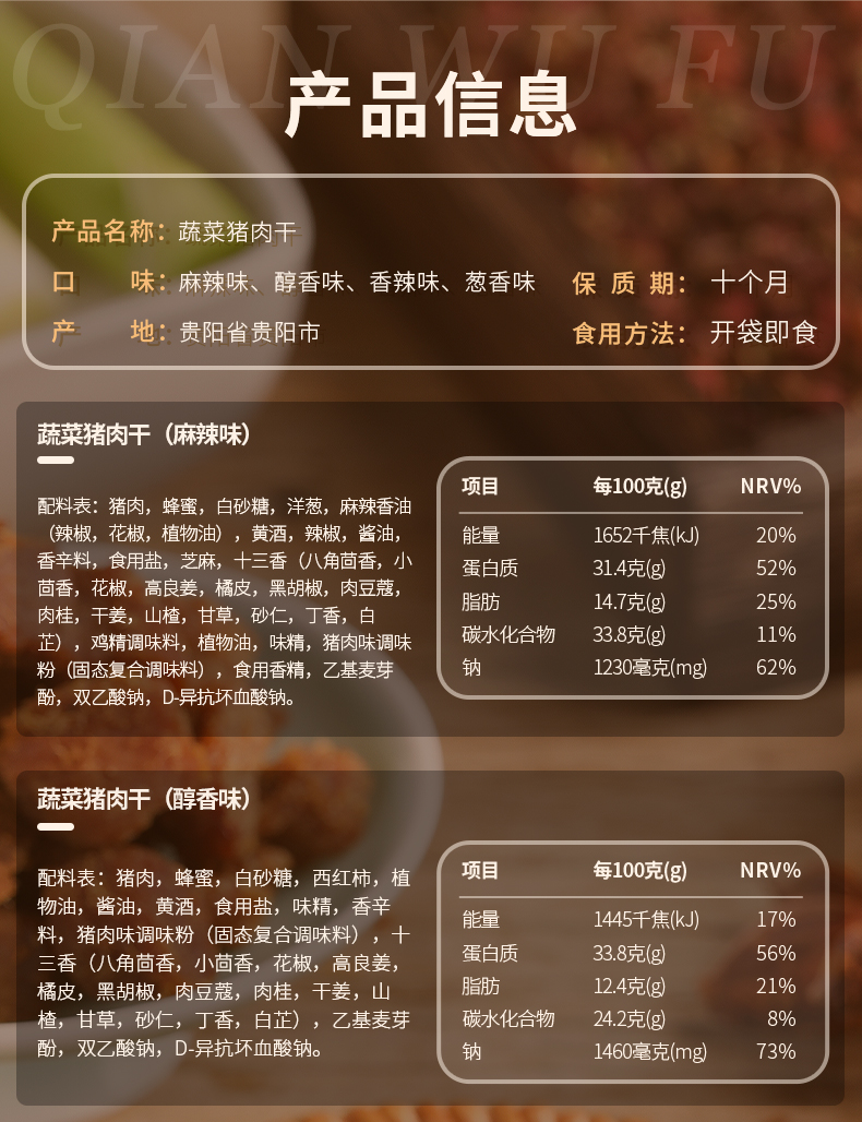 黔五福 颗粒蔬菜猪肉干散装系列 500g