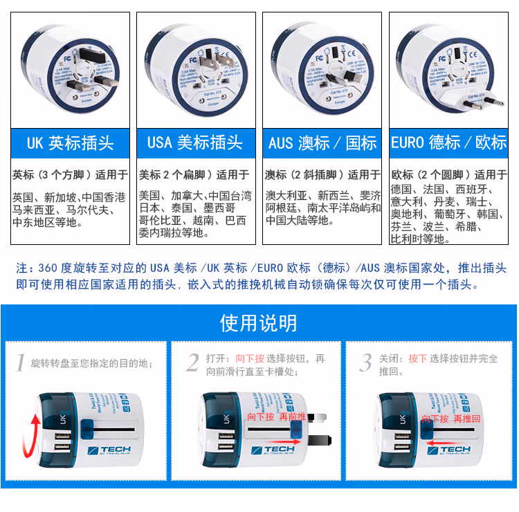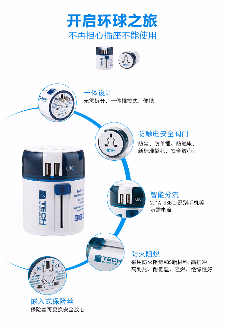 TRAVEL BLUE蓝旅 魔方环球通用转换插座